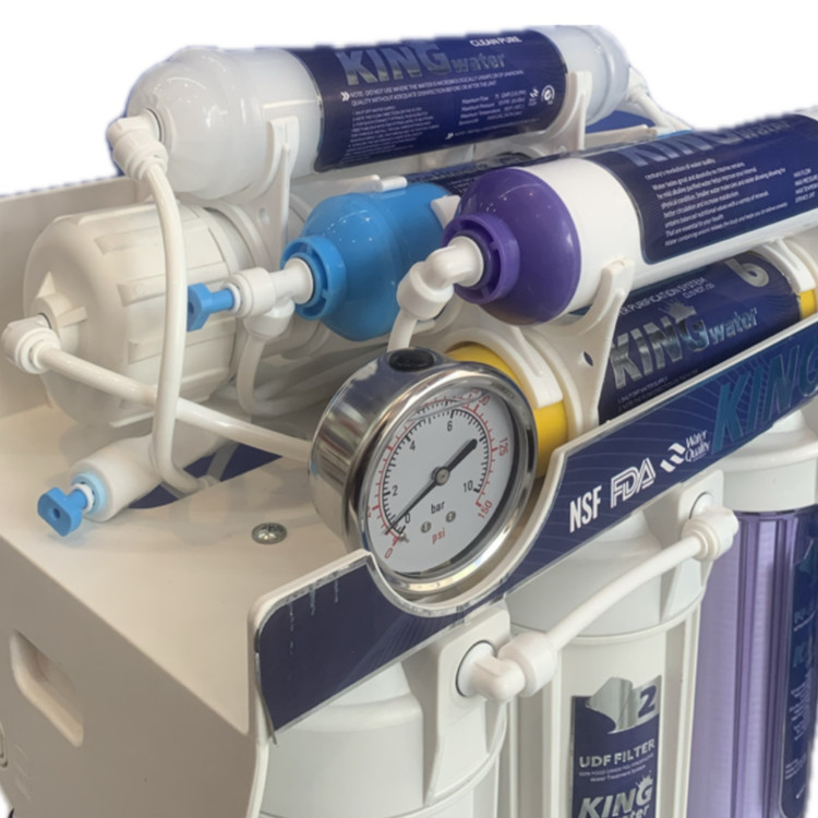 دستگاه تصفیه آب ۸ مرحلهای با بهرهگیری از سیستم اسمز معکوس (RO) یکی از کاملترین گزینهها برای تصفیه آب شهری محسوب میشود. وجود فیلتر ممبران قدرتمند باعث حذف نیترات، فلزات سنگین و املاح مضر شده و فیلترهای مینرال و قلیایی طعم آب را بهبود میدهند.